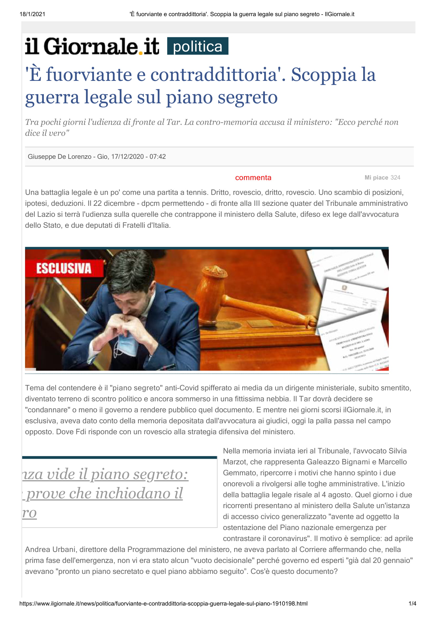 - https://www.lapressa.it/articoli/politica/vince-fdi-tar-costringe-speranza-a-mostrare-piano-segreto-sul-covid?fbclid=IwAR1uIS-qrgfQkKpVe5Cl1_KzrkQIkkBjmkVVreuLazYHw8IE6dvmXrZeafs