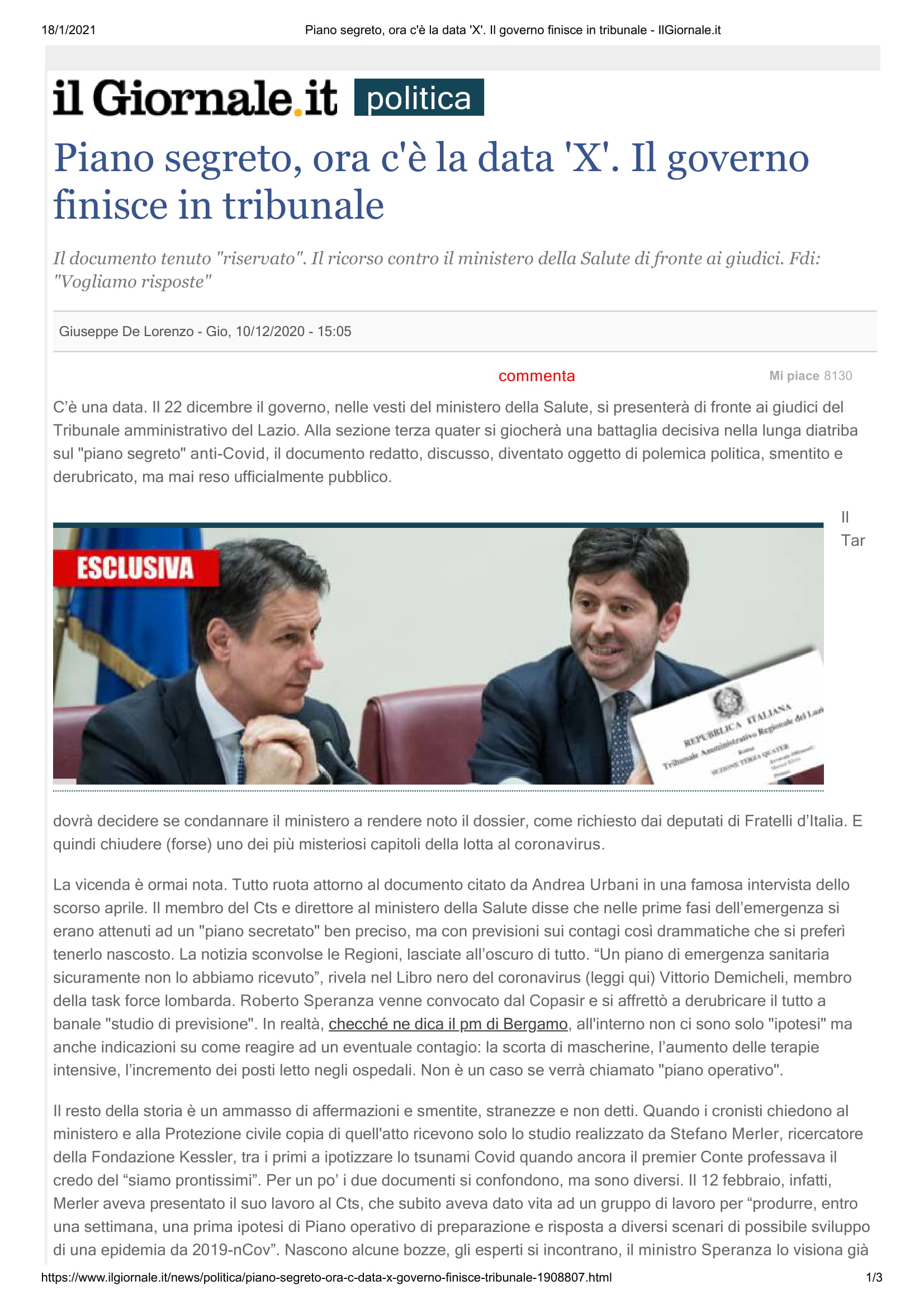 - https://www.ilgiornale.it/news/politica/giudice-condanna-ministero-deve-pubblicare-piano-segreto-1918621.html?fbclid=IwAR2v2Uu1LPazgm6PHmbNe4S7ZOFT2uC6L5pCaiAtmexElpu8jwofC03zHbc