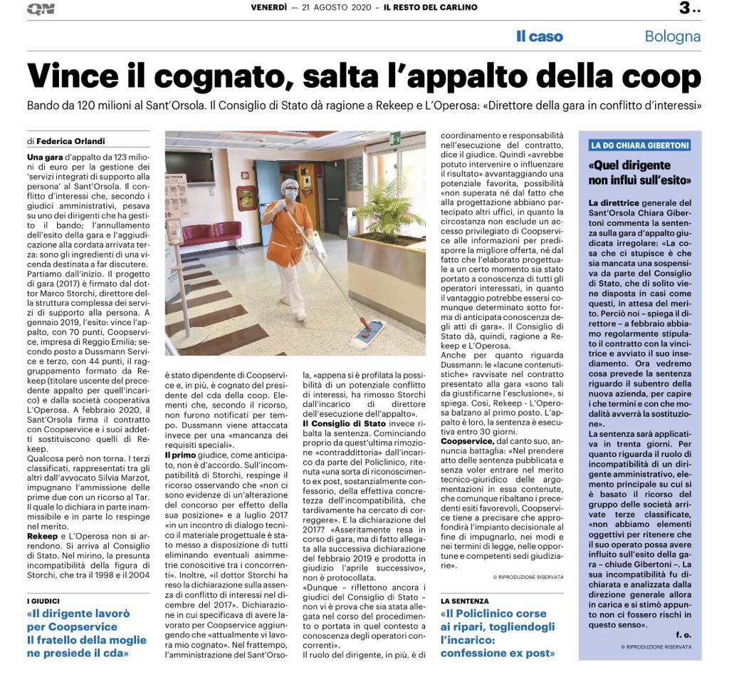 - https://www.ilrestodelcarlino.it/bologna/cronaca/appalto-annullato-sant-orsola-1.5433142